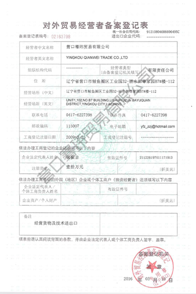 Yingkou Qianwei Trading Co., LTD., founded in 2009, is a professional platform company that provides enterprises with overall solutions for foreign trade supply chain, and is committed to serving small and medium-sized enterprises. According to the needs of enterprises, the company will use the advantages of the platform to help small and medium-sized enterprises to expand the international market accurately, efficiently and at low cost.